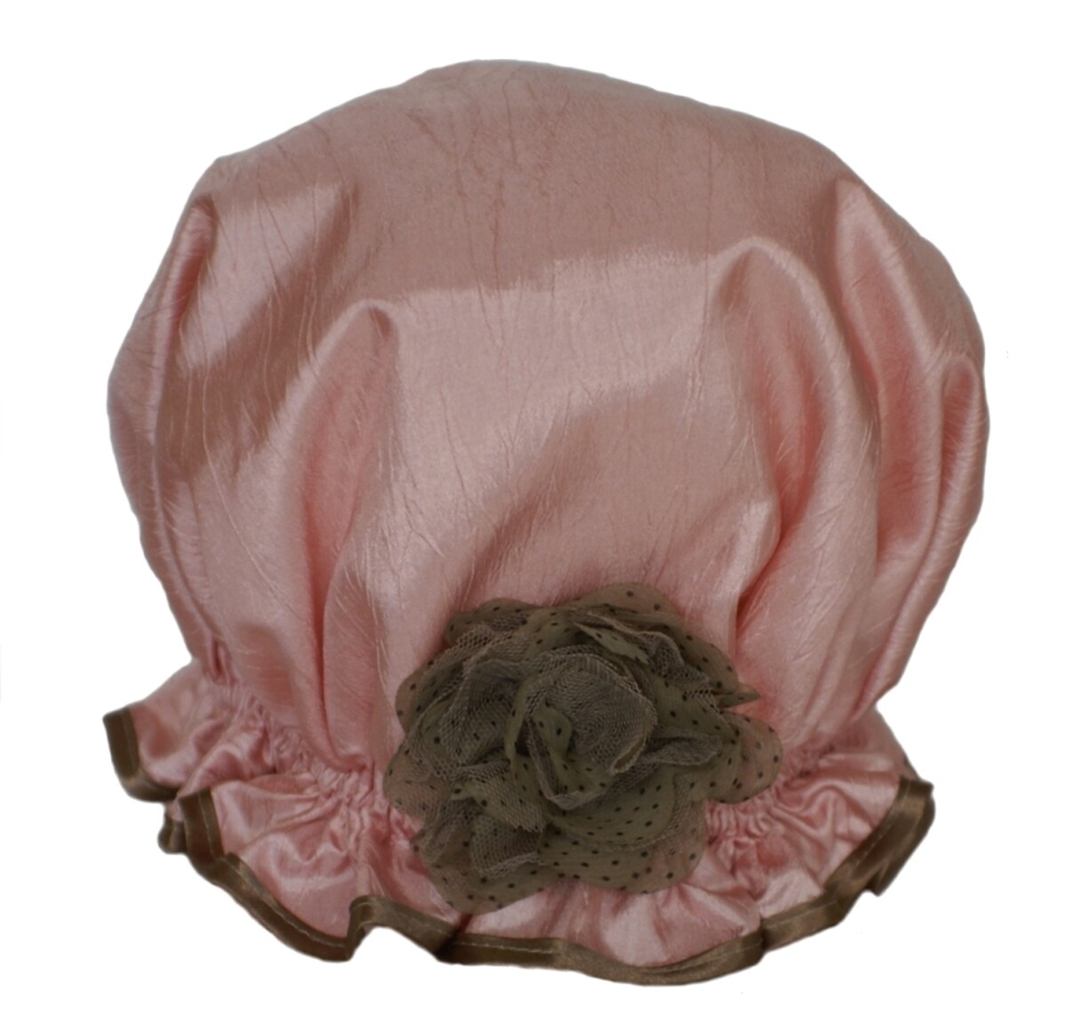 Classic Pink Flower by So Pretty is created using Crushed Taffeta, embellished with a soft Brown flower and matching Satin edging. The combination of Dusty Pink and Brown has been popular with fashion style and accessories seemingly forever, perhaps it has never gone out of vogue! They look soft and feminine together and as a So Pretty Shower Cap even more so! These two colours are associated with Boho Chic and Rustic styled homes. The combination of Pink and Brown gives a warm feel to the décor. Hence this Classic Pink shower cap by So Pretty can be an ideal bathroom accessory should you be looking to match in with what you have already! Even just the touch of soft Brown on this So Pretty Shower Cap may be just enough brown to fit in with your bathroom vanity colour if it is wood toned, with the Dusty Pink being a highlight. Even towels and other bathroom accessories can pick up on the Classic Pink Flower colours, or vice versa! If by chance these are the colours of choice for a Bridal Party, then gifting the Classic Pink Flower shower cap at your Bridal shower is a lovely idea! The girls would be delighted to use and keep their practical shower cap, especially if the Bridesmaids dresses are deemed unwearable any other occasion other than the Wedding day! A So Pretty Shower Cap is a lovely way to say thankyou and provides a long term memory of the big day!