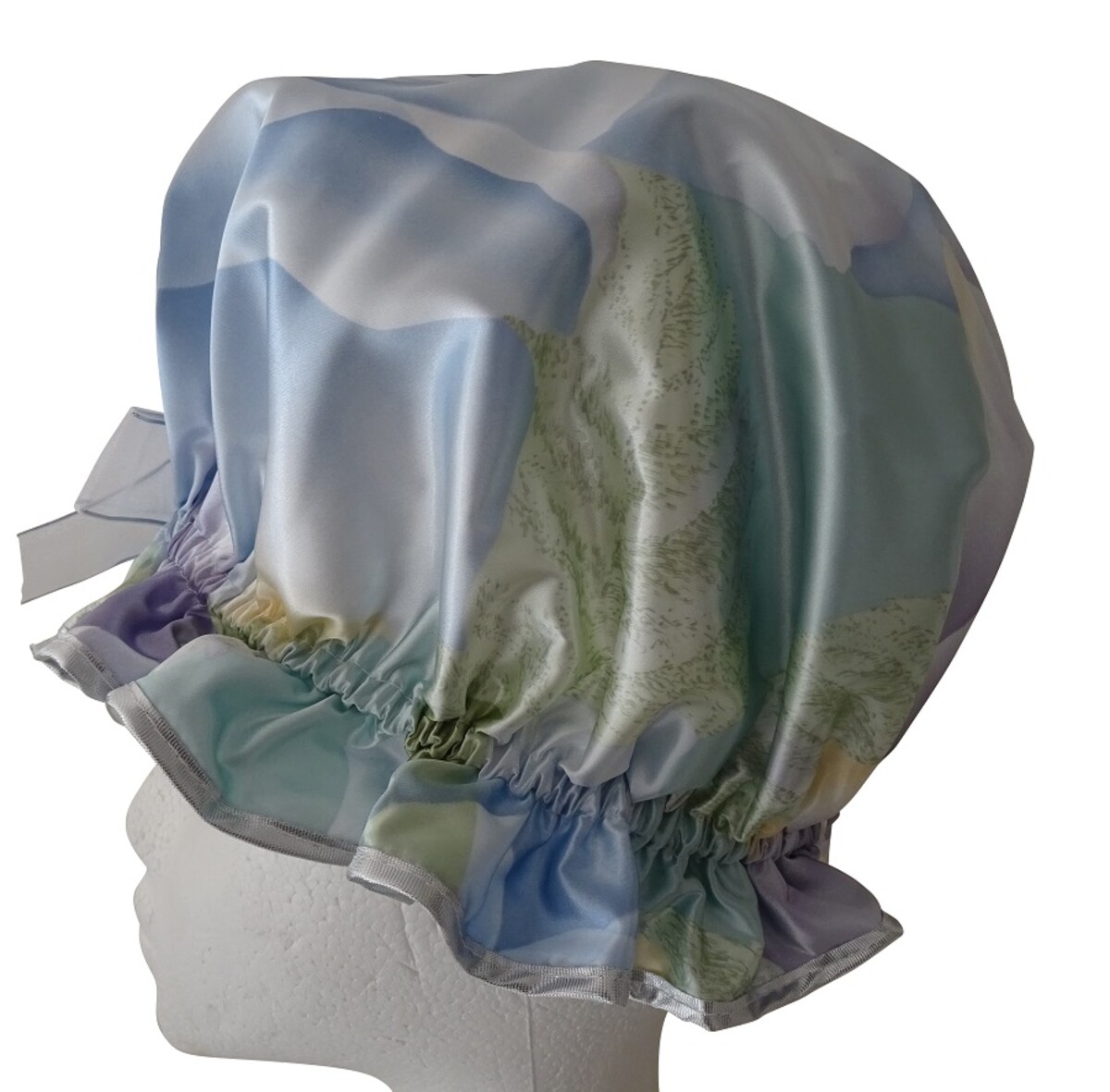 If I had to choose a shower cap that portrays classic style and elegance, it would be this design, Classique by So Pretty. The fabric is of very high end quality and it shows with the end product here. As any dressmaker would tell you, some fabrics are worth the investment for their uniqueness and perfection for what is intended to use it for! The result is Classique as you see here!