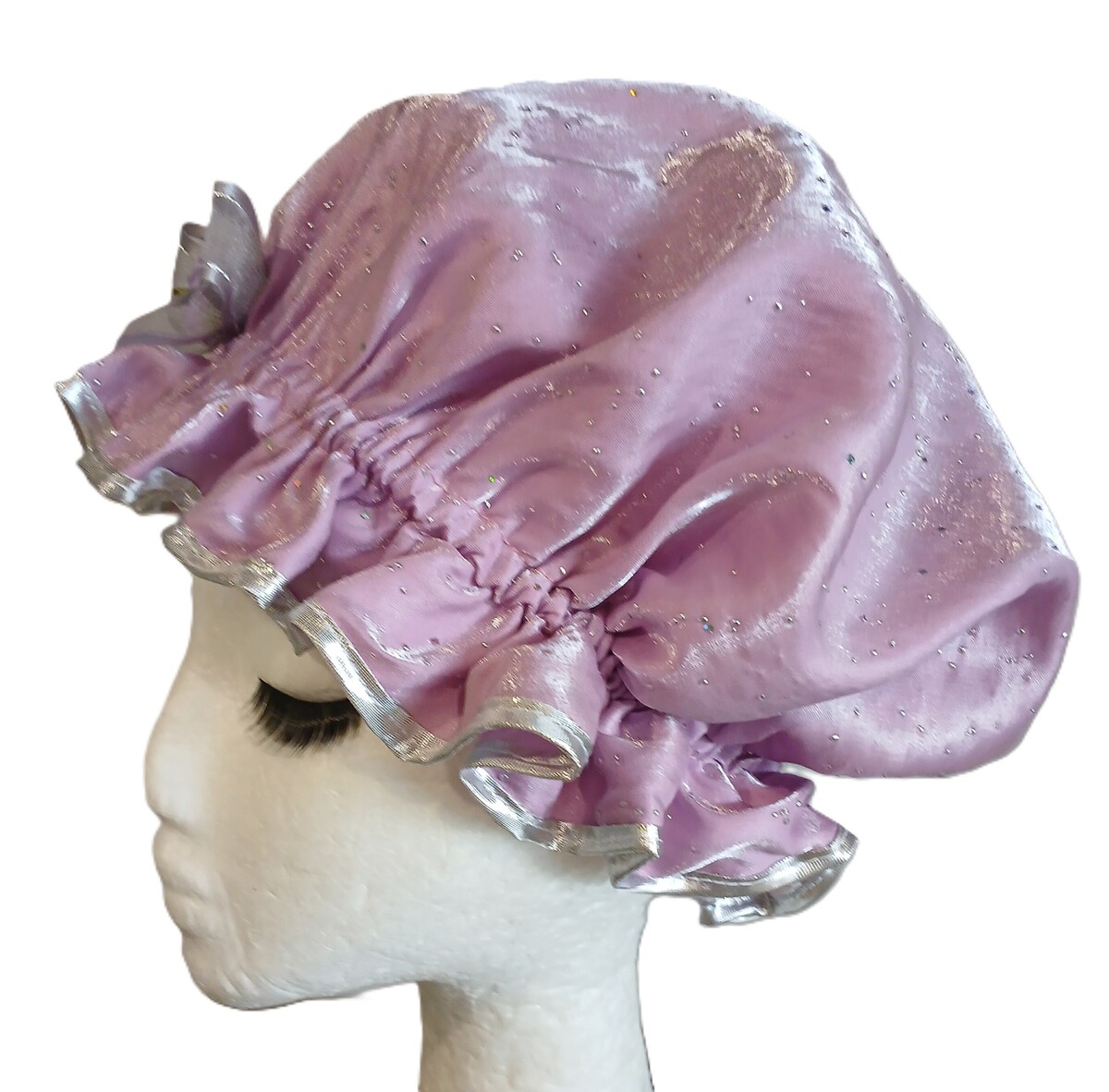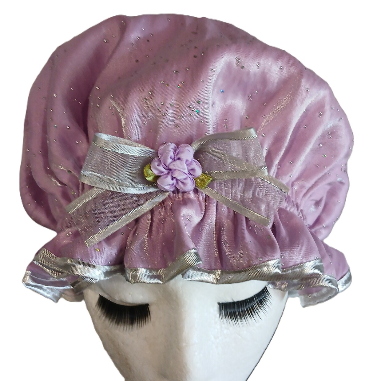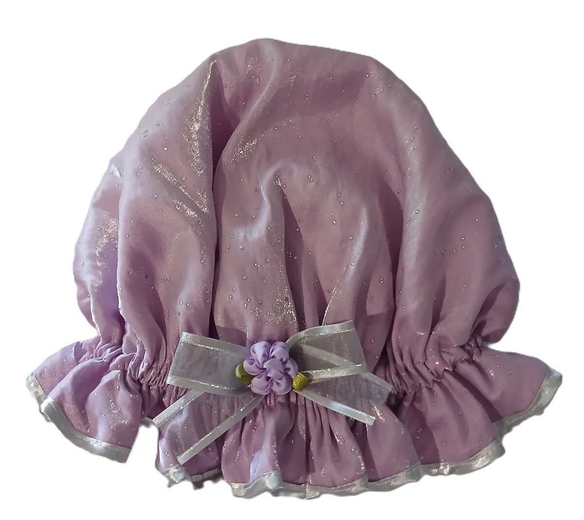 The So Pretty Crystallina Lilac is trimmed with a Satin Organza ribbon bow centred with a perfectly colour matched flower. A So Pretty shower cap is hand made with care and attention, and the matching trims make a big difference to the finished product overall. This is what makes So Pretty shower caps just that little more special and exclusive. All of the Crystallina range have a smaller Girls size available should this option appeal or suit the ladies and girls in your household (or gifting scenario of course!)