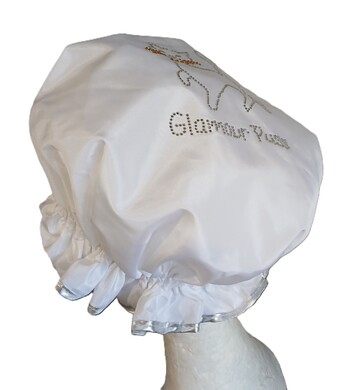 This So Pretty Glamour Puss shower cap is a Diamante design for the attention seekers, selfie takers and Instagram fashionistas to name but a few eligible applicants! Oh and not to forget the millions of cat loving people out there! This is for you, a a cat themed shower cap with bling! Not to mention a cat shower cap that is stylish, quality and made to last! So Pretty makes shower caps with beautiful fabrics and quality materials to finish with a beautiful product you can be proud to own and be seen in. This Glamour Puss shower cap would be a quirkly gift for a cat loving person who is into cat accessories, the point of difference is that this gift is unique and practical! No matter who you are and what your lifestyle is, everyone loves a little pampering and glamour in their lives. The Glamour Puss shower cap is a combination of both! Available in Classic White or Lilac options, both shower caps are trimmed with Silver Lame edging which finishes off this quality hair accessory purrfectly. Being called a Glamour Puss can be a term of endearment if called out in a friendly way. These days in social media it would most likely be seen as a compliment Perhaps you know someone who is a Glamour Puss and a cat lover, even better! This is the shower cap for you or to gift! But even if the attraction was initially the slinky cat since you are a cat person (or know someone who is passionate about cats), then this shower cap is purrfect! A pretty and practical way to prevent your tresses from becoming a furr or knot ball!