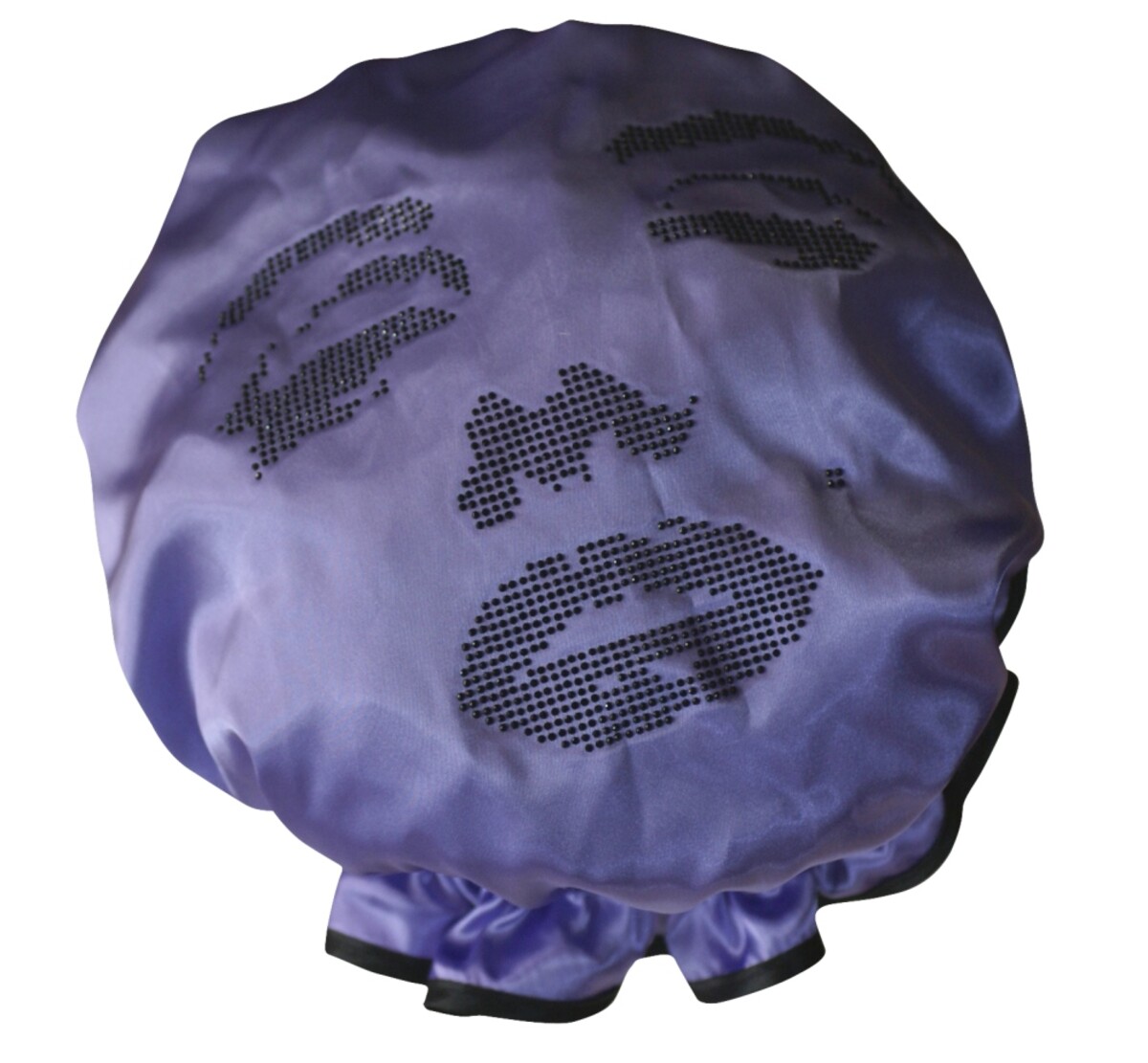 The Marilyn Diamante image just about covers the whole shower cap. Well she was a larger than life icon after all! The image is created using black onyx like chips rather than the usual glittery Diamantes used on other So Pretty designs. There are two colour options for the Marilyn shower cap, being Pink and Lilac. Both have Black Satin edging.