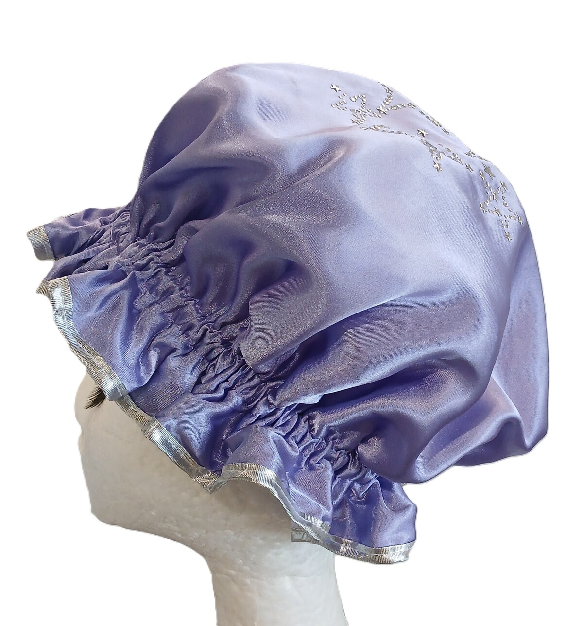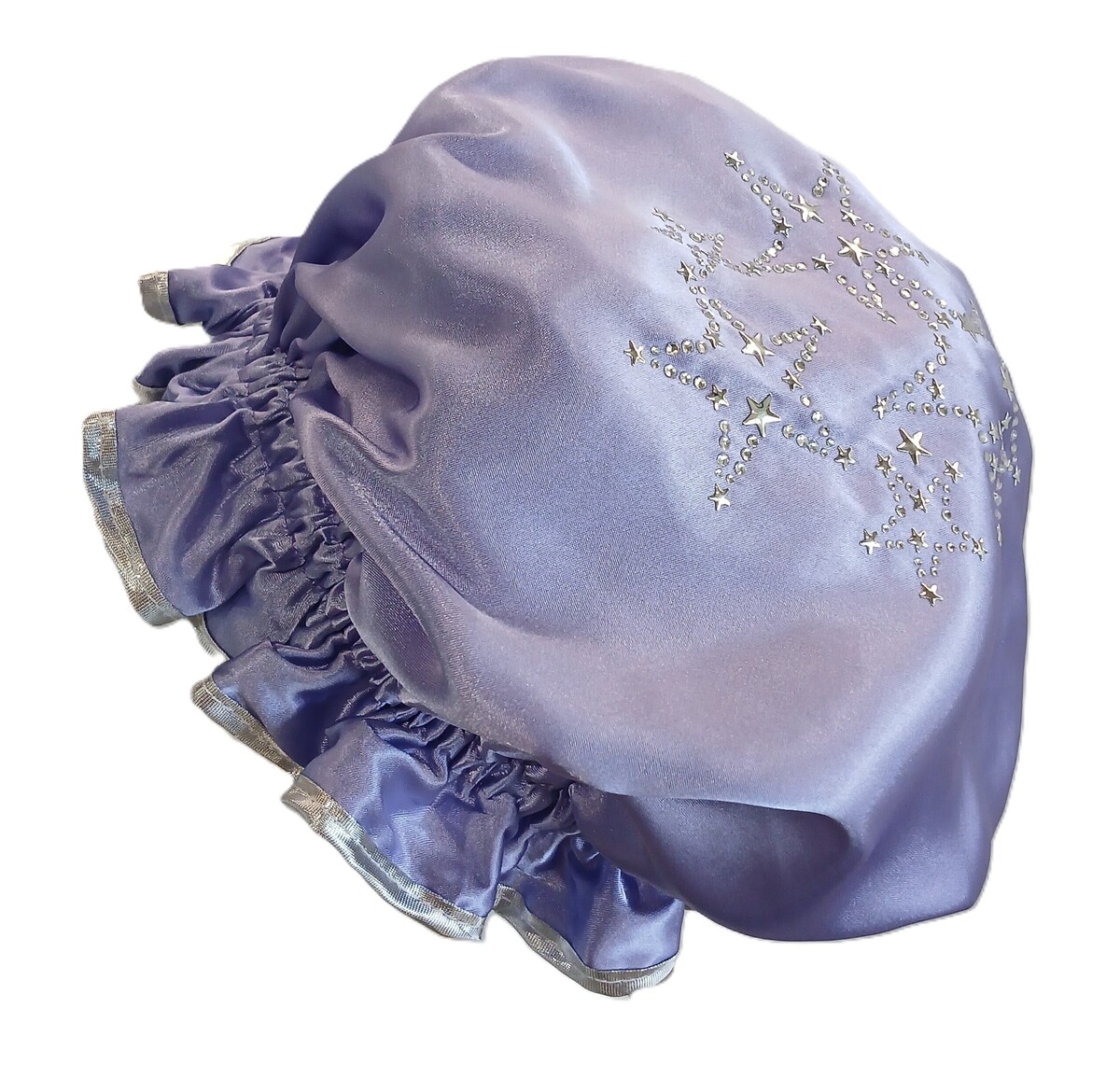 Available in Hot Pink and Lilac options, this diamante design would especially appeal to the “singing in the shower” kind of girl or the bright star of the family! This So Pretty shower cap is made using Charmeuse satin and edged with Silver Lame trim. And of course accommodates a good length of hair with its generous oversized design. A Star is born, or created in this instance by So Pretty. Especially appropriate if there is a budding performer or opera singer in your household - or you know someone who will gladly accept a So Pretty Shower Cap that suits their outgoing personality!