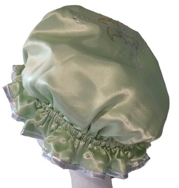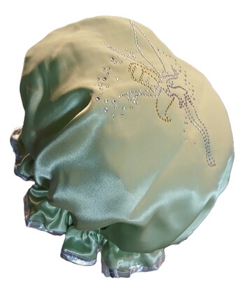 I am sure any little girl receiving this shower cap will feel awesomely special and rush off to dress up in her fairy wings and tutu. See, I have created a multi purpose shower cap, a dress up accessory as well as a useable product to keep those tresses dry at bath time! No fly away hair with this little number!