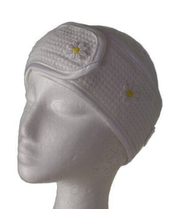 One of three Microfibre Head Bands or Head Wraps with the daisy design available from So Pretty!  These are made with a waffle weave microfibre which  is of exceptionally good quality and they are very well constructed.