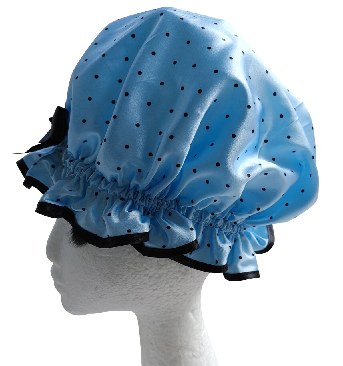 This is such a cutie of a shower cap and reasonably new to the So Pretty Shower Cap collection! Polka Dots feature on many So Pretty shower cap designs, so here is another option in a lovely powder Blue.