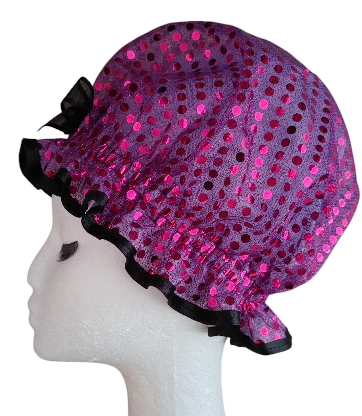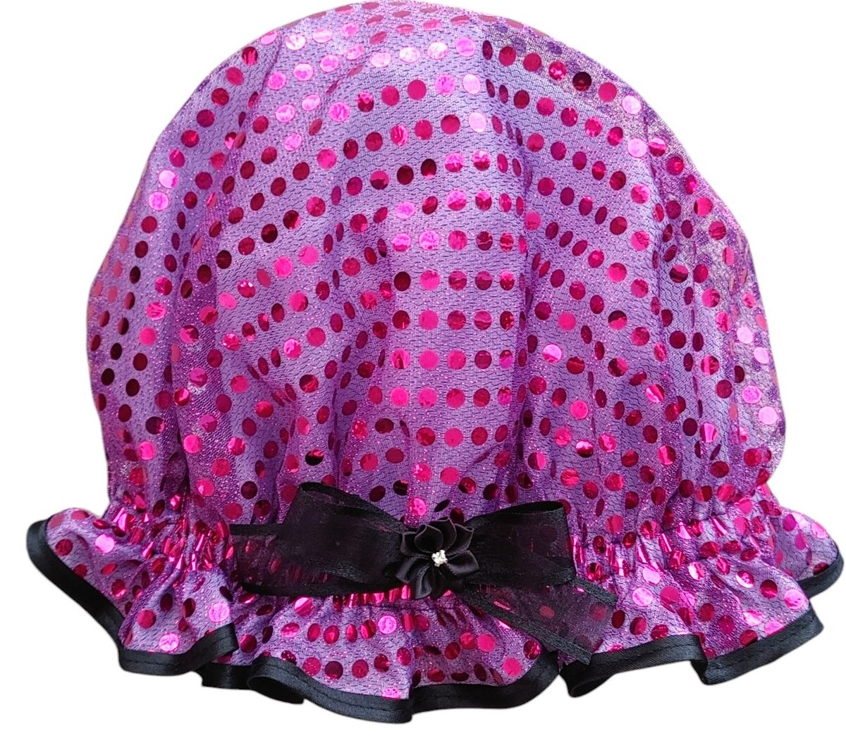 There are many options for the colour purple in the So Pretty Shower Caps range. So if you love Purple, or plan to gift a Purple shower cap to someone who does, the selection comes down to colour + personality + style. There is this Sequinned Purple, Satins, Sheers, with light and dark variations. So there is sure to be a Purple shower cap in the range that ticks all the boxes!