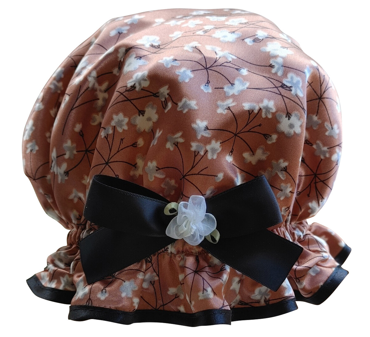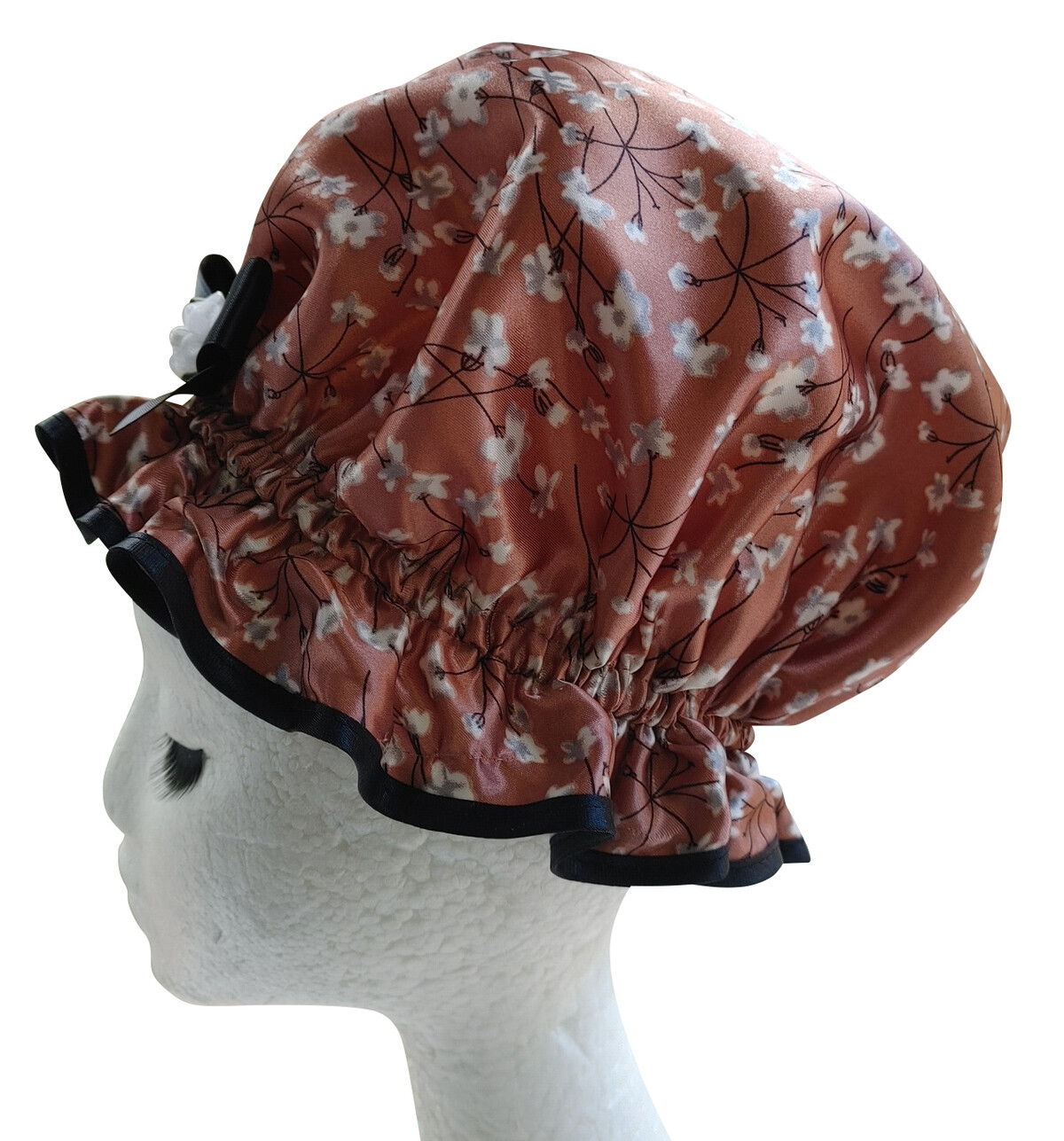 The light Brown base colour is a pleasant alternative to the expectation of Cherry Blossom being represented by shades of Pink. But the Cherry Blossom flower variations are Pink or White so this So Pretty Shower Cap is aptly named and rightly so!